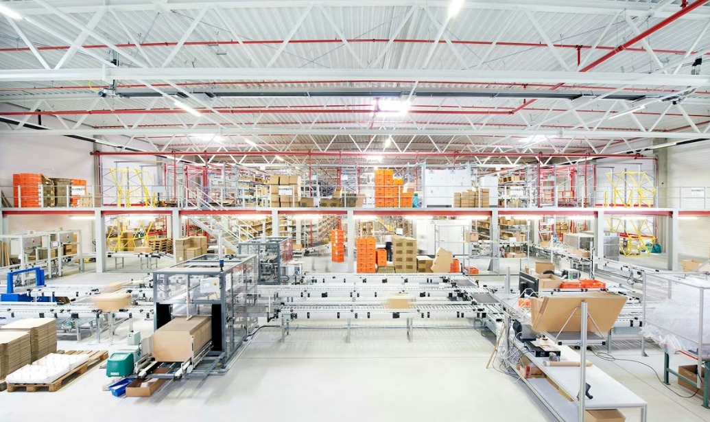 This warehouse is designed to support efficient industrial operations, featuring a high-clearance ceiling suitable for vertical storage and racking systems. The mezzanine floor provides additional usable space, ideal for offices, staff accommodation, or extra storage.
